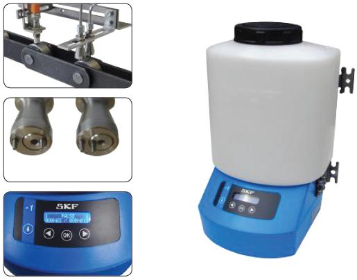 SKF ChainLube airless je zdravotně nezávislé, snadno použité řešení pro přesné automatické mazání válečkových řetězů. Systém obsahuje centrální jednotku přinášející přesnou dávku maziva přesně k místům tření každého řetězu za provozu. Řídící jednotka je nastavena na optimální načasování mazací dávky. Všechny prvky systému jsou odolné proti korozi a to v širokém pásmu teplot.