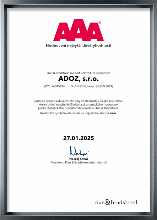Ocenění AAA je silný nezávislý rating firem a společností, jehož historie sahá až do roku 1908. Certifikace je postavena na mezinárodním hodnocení s využitím originální a osvědčené metodiky.
