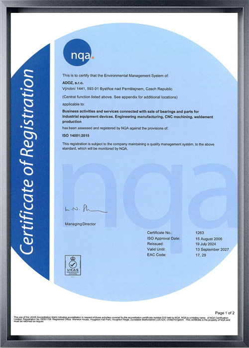 The top management of ADOZ s.r.o. have undertook to continuously improve pollution prevention and to comply with the requirements of relevant legal regulations and other requirements to which the company is committed and which relate to the company’s environmental impacts.