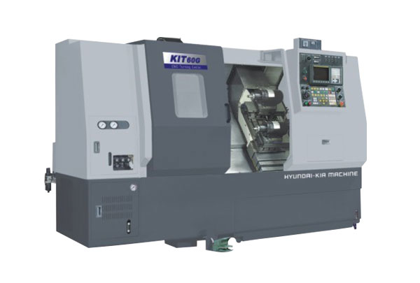 Výkonné a tuhé 4 osé soustružnické centrum s 1,5 m podavačem tyčí, 2 osami Y, 2 vřeteny a 2 revolverovými hlavami.