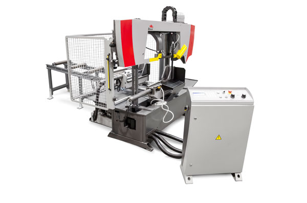Dvousloupová automatická pásová pila pro kolmé dělení materiálu do průměru až 450 mm. Pila je schopna
